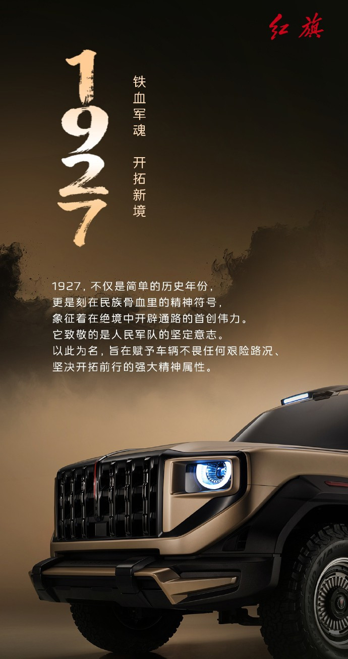 1927,不仅是简单的历史年份,更是刻在民族骨血里的精神符号,象征着在绝境中开辟通路的首创伟力。它致敬的是人民军队的坚定意志。以此为名,旨在赋予车辆不畏任何艰险路况、坚决开拓前行的强大精神属性。
